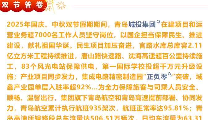 935架次,506萬輛次,7000余人在崗……青島城投雙節答卷來了!